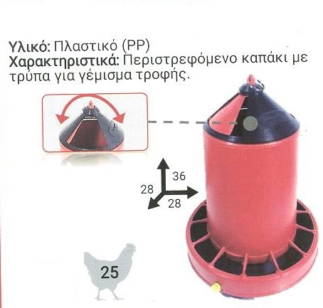 - πολλές θέσεις για να τρώνε 25 κότες / πτηνά ταυτόχρονα.