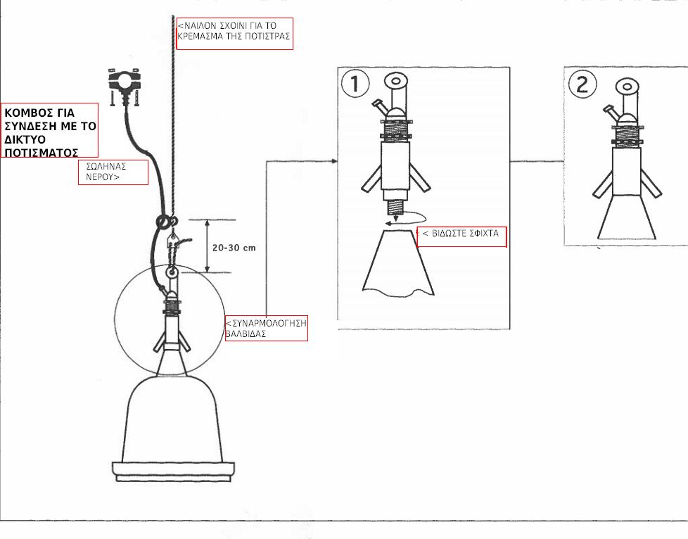 - Λειτουργεί μόνο με παροχή νερού από δεξαμενή ή δοχείο(φυσική ροή) και όχι με πίεση δικτύου.