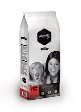 Η Amity Chicken & Rice είναι μια πολύ εύγευστη ξηρά τροφή με κοτόπουλο, εύπεπτο ρύζι και πολύτιμο χαρούπι. Είναι πλούσια σε ζωική πρωτεΐνη, δεν