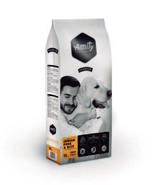 Η Amity Iberian Pork είναι μια πολύ εύγευστη ξηρά τροφή με επιλεγμένο ντελικάτο και υποαλλεργικό μαύρο χοίρο Ιβηρίας και πολύτιμο χαρούπι. Είναι πλούσια σε ζωική πρωτεΐνη και περιέχει υποβαθμισμένη περιεκτικότητα σιτηρών - Low Grain. Δεν έχει μεταλλαγμένα συστατικά (GMO) και η περιεκτικότητα
