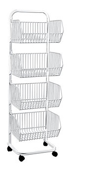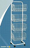 Σταντ προιόντων μεταλλικό λευκό με 4 μικρά συρμάτινα καλάθια με Διαστάσεις 140 Χ 41 Χ 33